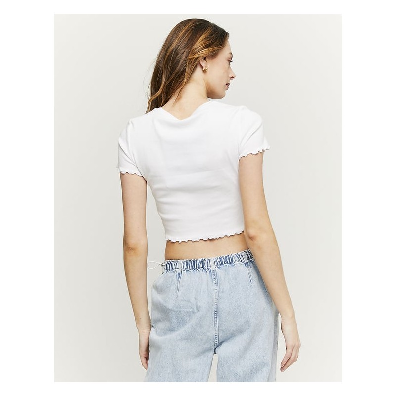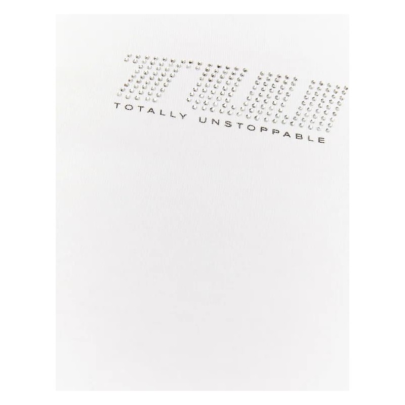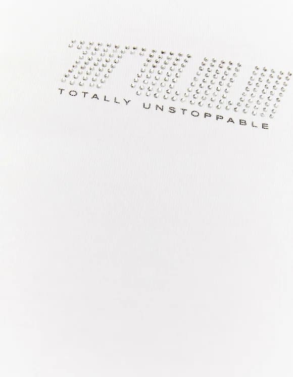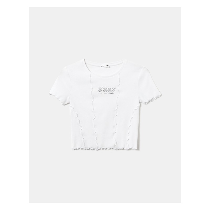 Camiseta crop con letras strass para mujer