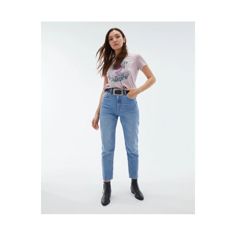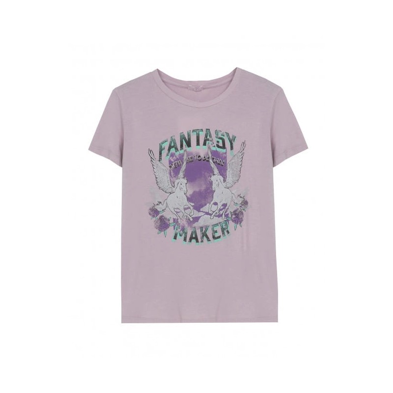 Camiseta regular fit de cuello redondo y manga corta. Tinte especial efecto desgastado con estampado unicornio.