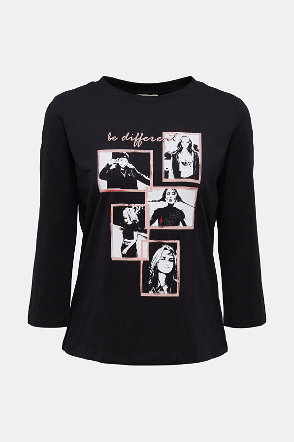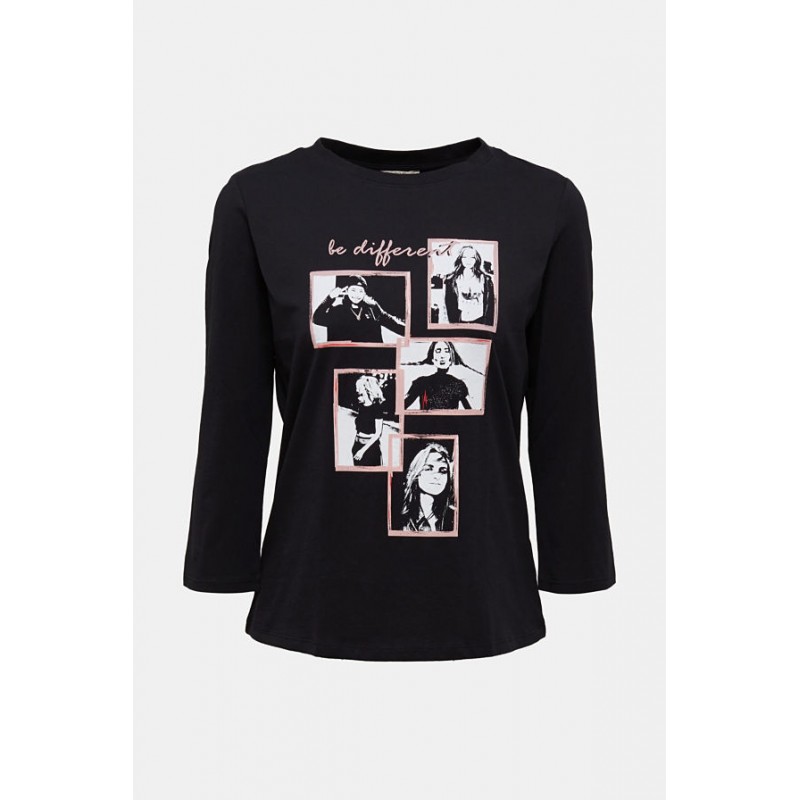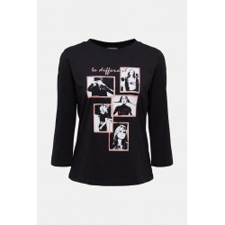 Camiseta estampada para mujer. Manga tres cuartos con cuello redondo.