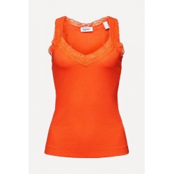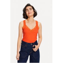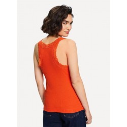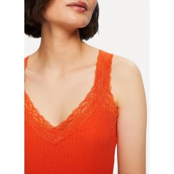 Top acanalado para mujer de corte ajustado, escote en pico y de ribete de encaje alrededor del cuello y de las tiras.