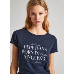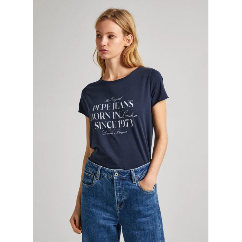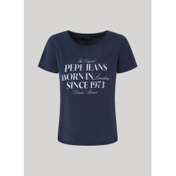 Camiseta fit relaxed en tejido jaspeado de manga corta y cuello redondo. Bordes enrollados en cuello, mangas y bajo. Costura decorativa en la parte central de la espald. Logo PEPEJEANS tamaño maxi estampado en el pech.
