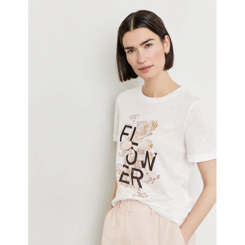 Camiseta de manga corta y cuello redondo. Estampado floral en la parte delantera.
