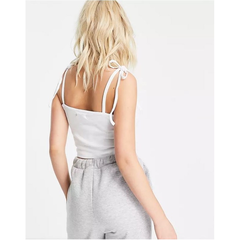 Top de asillas con escote en pico y ribeteado. Asillas con nudo para atar.