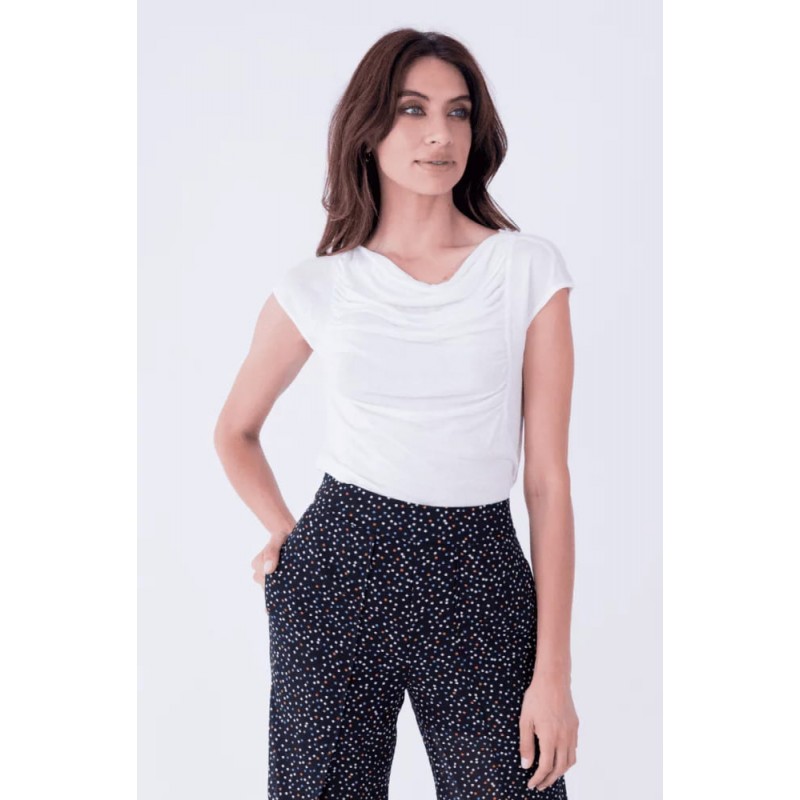 Camiseta de manga corta y cuello redondo con el frente plizado.