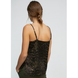 Top animal print para mujer de asillas, ligero y de escote en pico de detalle de encaje.