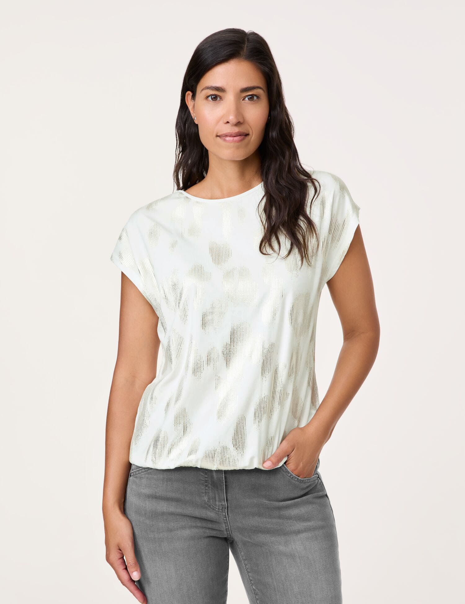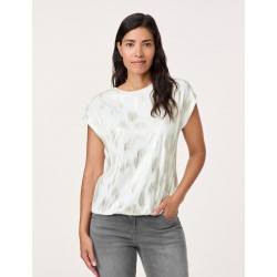 Camiseta estampada para mujer.Manga corta. Hombros caídos. Cuello redondo. Cintura elástica en el dobladillo. Estampado animal brillante en la parte delantera.