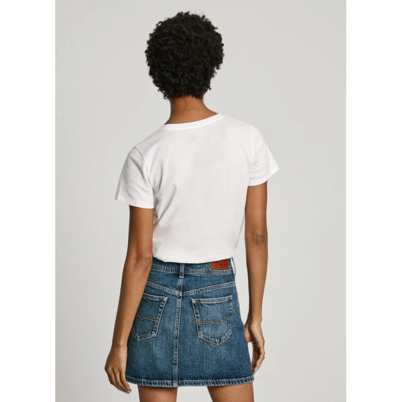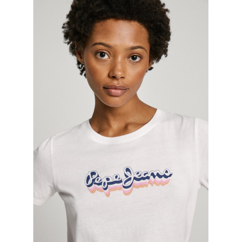 Camiseta estampada para mujer. Manga corta. Cuello redondo. Logo PEPEJEANS con efecto 3D estampado en frontal. Acabado doble pespunte en puños y bajo.