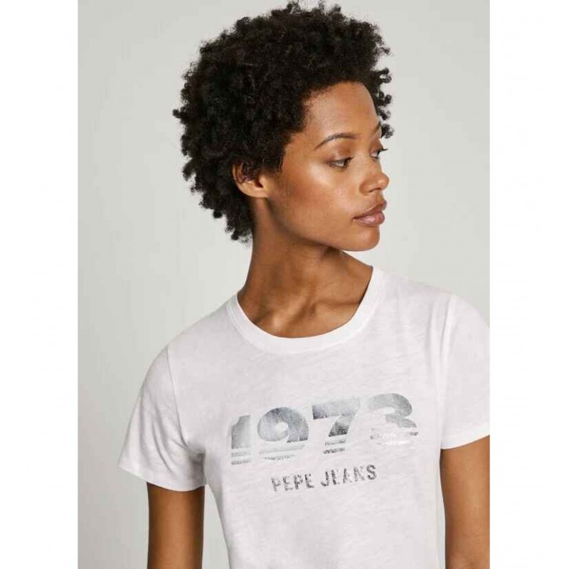 Camiseta estampada para mujer.Manga corta. Cuello redondo. Logo PEPEJEANS 1973 metalizado estampado en el pecho. Detalle canalé en cuello.