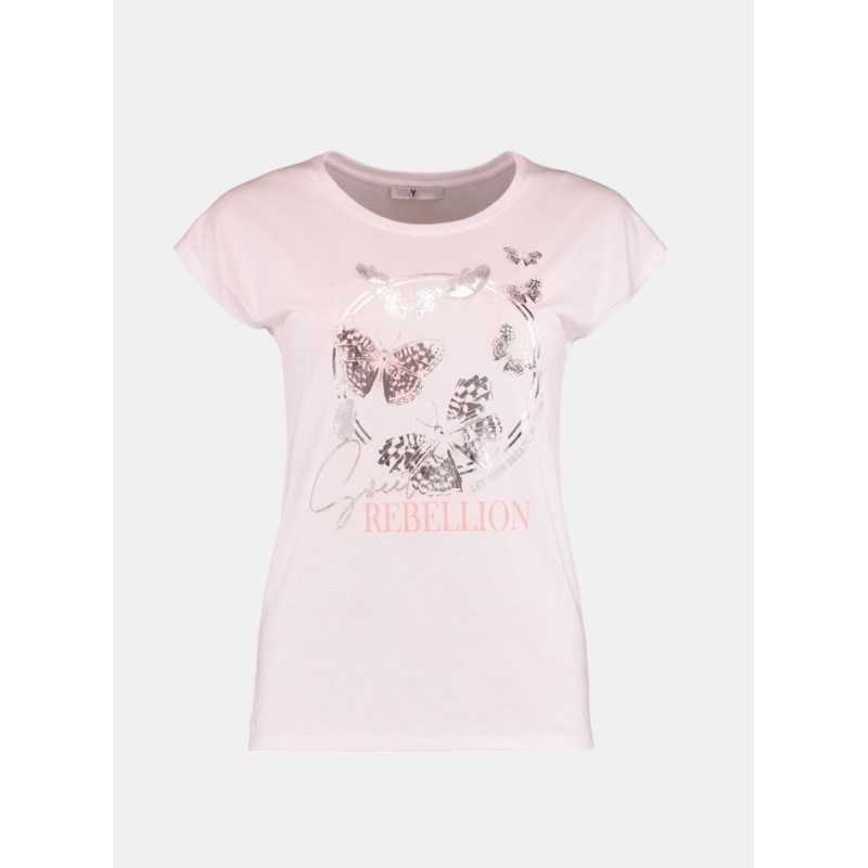 Camiseta estampada para mujer de cuello redondo y manga corta.