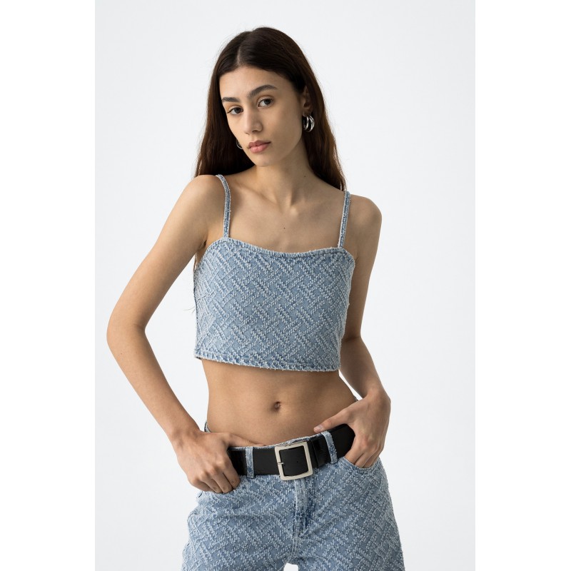 Top corto denim para mujer.