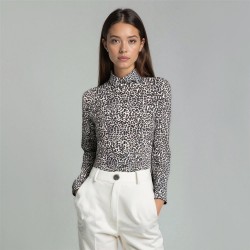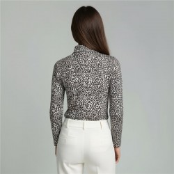 Camiseta estampada para mujer. El cuello alto y las mangas largas crean una silueta atemporal y ofrecen mayor cobertura, mientras que el llamativo estampado de leopardo le da un toque elegante.