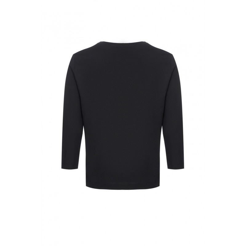 Camiseta mangas 3/4 para mujer. Estampado delantero decorado con pedrería. Tejido suave y elástico. Cuello redondo.
