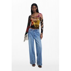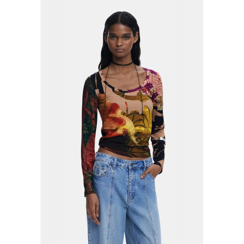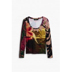 Camiseta de manga larga y escote redondo pronunciado con estampado oriental diseñada por Monsieur Christian Larcoix.