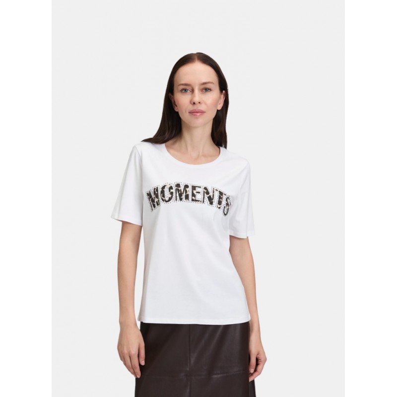 Camiseta de manga corta para mujer. Cuello redondo. Estampado frontal.
