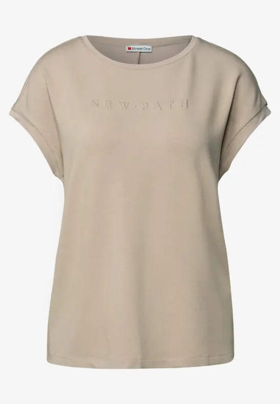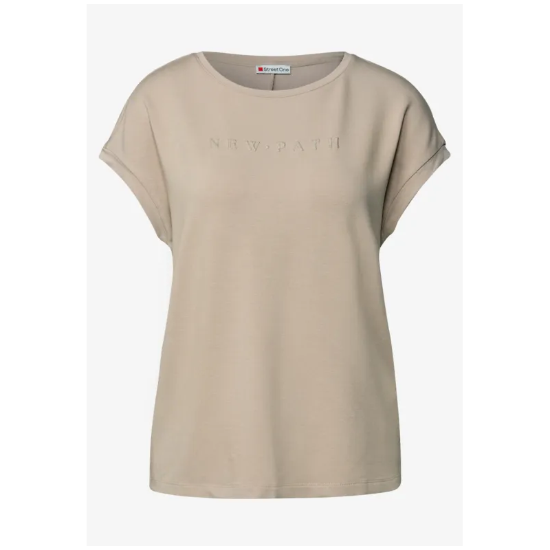 Camiseta de manga corta para mujer. El cuello redondo y los hombros caídos completan el look, mientras que las letras brillantes y las rayas brillantes en los laterales le dan un toque especial.Tacto suave.