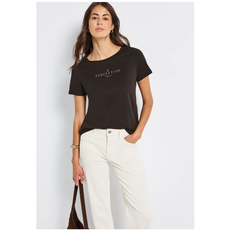 Camiseta de manga corta para mujer. Cuello redondo. Ideal para combinarla con vaqueros o faldas. Su tejido de algodón puro garantiza un ajuste especialmente cómodo.