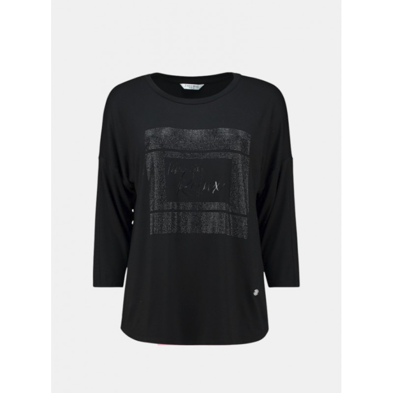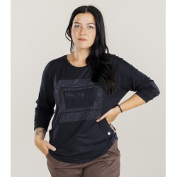 Camiseta pedrería para mujer de cuello redondo y manga larga.