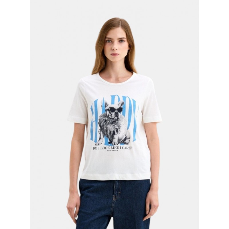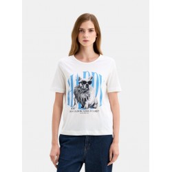 Camiseta estampada para mujer, cuello redondo y manga corta.