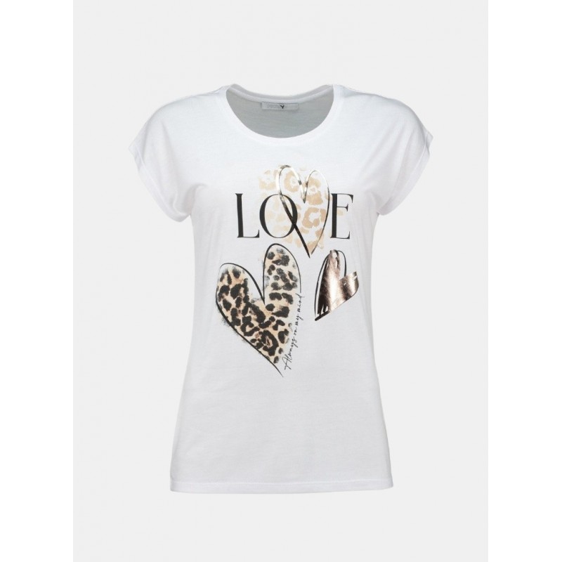Camiseta de estampado para mujer de cuello redondo y manga corta.