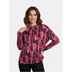 Camiseta estampada ligera para mujer de cuello redondo y manga larga.