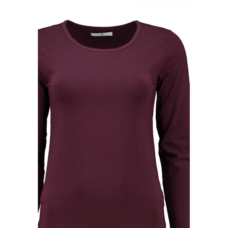Camiseta de manga larga para mujer. Cuello redondo. Diseño liso. Perfecta para looks casuales o para combinar con chaquetas y cárdigans, esta blusa es una prenda versátil que no puede faltar en ningún armario.