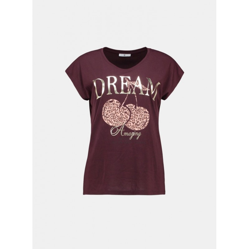 Camiseta de manga corta para mujer. Cuello redondo. Estampado frontal.
