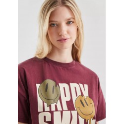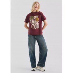 Camiseta para mujer estampada de corte holgado, cuello redondo y mangas cortas.