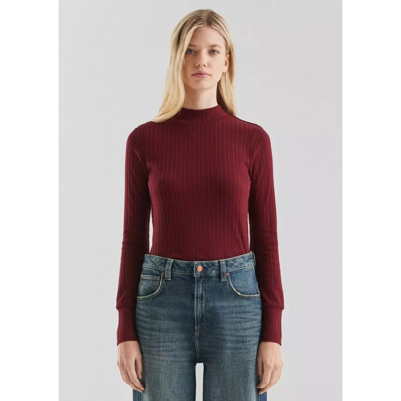 Camiseta para mujer de corte ajustado, cuello alto y mangas largas.