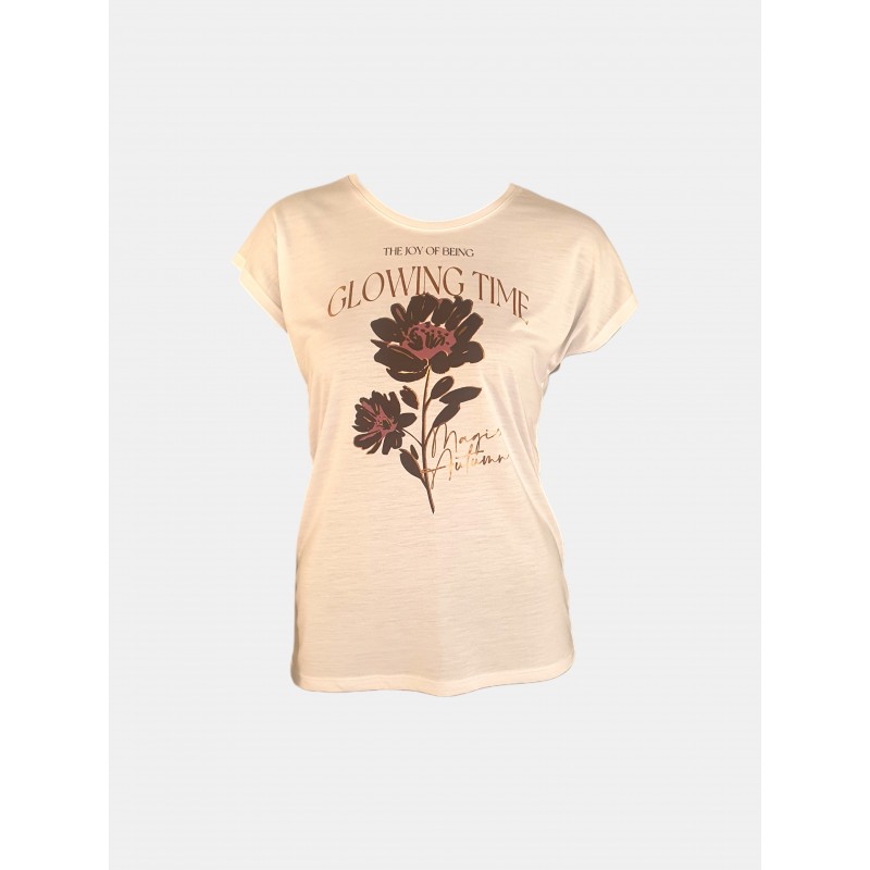 Camiseta de manga corta para mujer. Cuello redondo. Estampado frontal.
