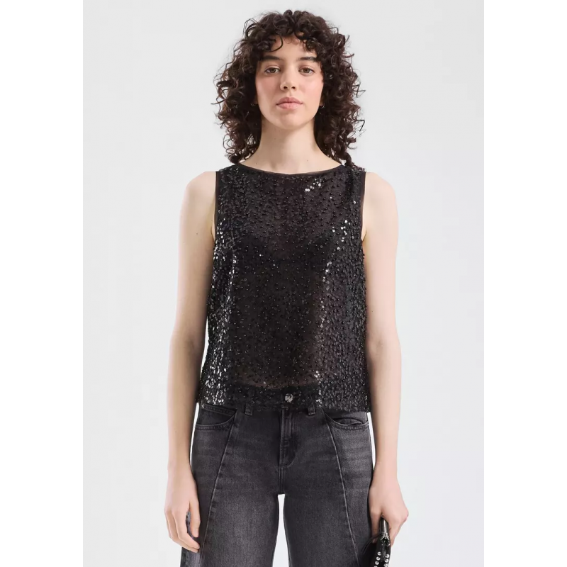 Top de lentejuelas sin mangas para mujer. Ajuste regular.