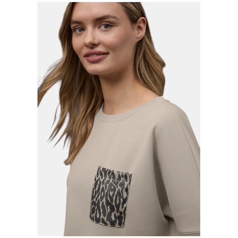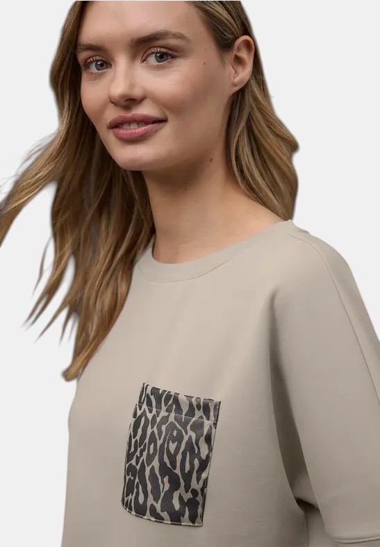 Camiseta manga corta para mujer. Con bolsillo en el pecho con estampado de leopardo. Su suave mezcla de modal con elasticidad adicional garantiza una sensación de suavidad. Perfecta con vaqueros o falda para crear conjuntos con un toque de extravagancia.