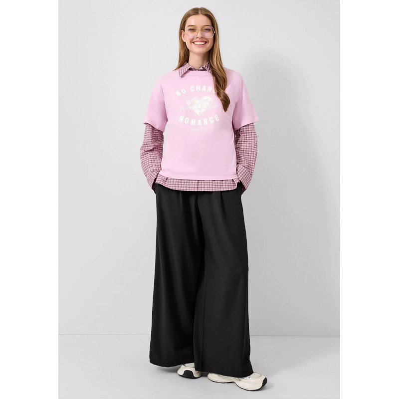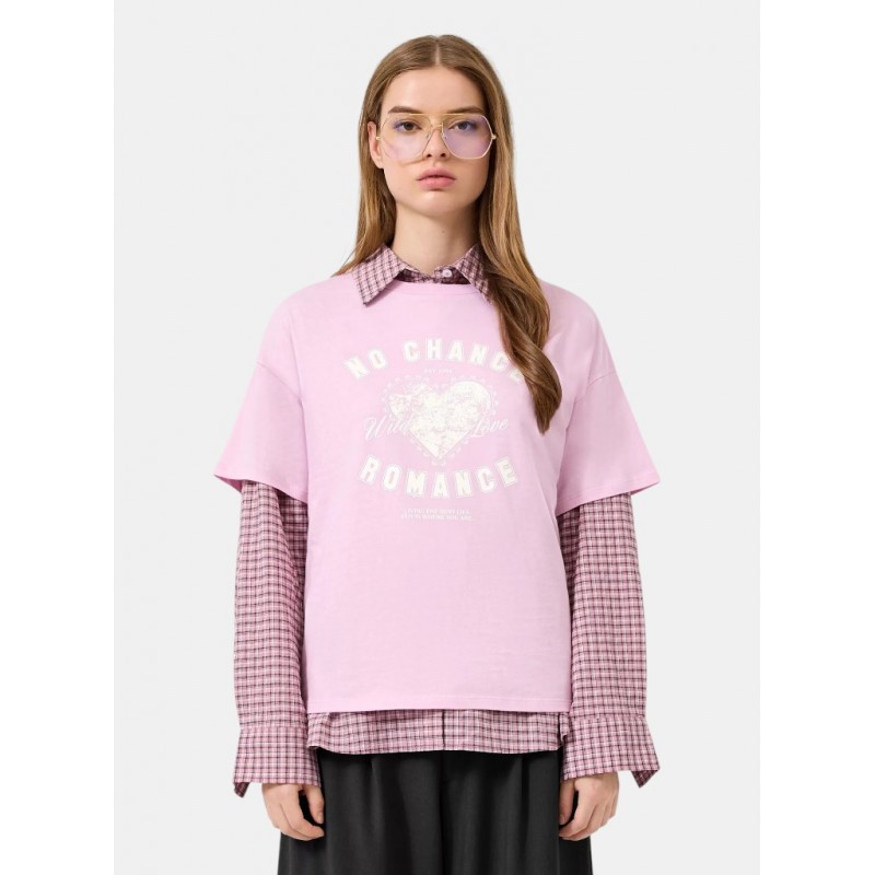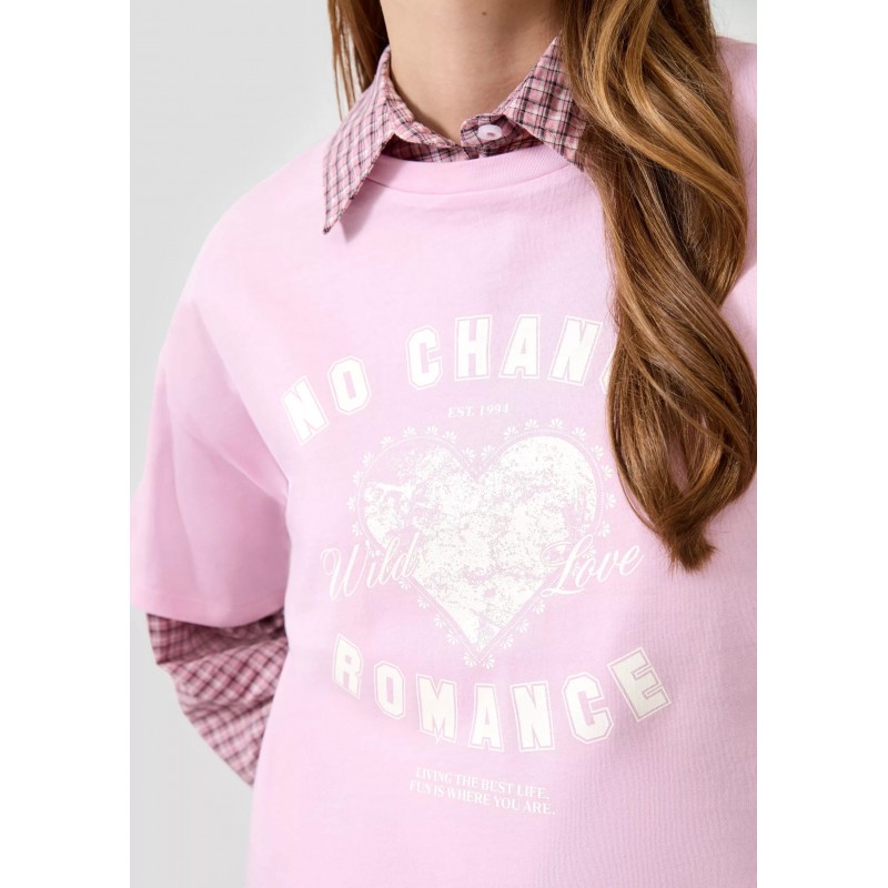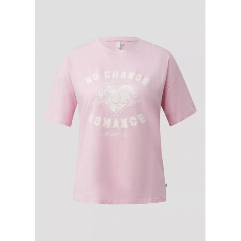 Camiseta para mujer con un estampado frontal de cuello redondo y manga corta.