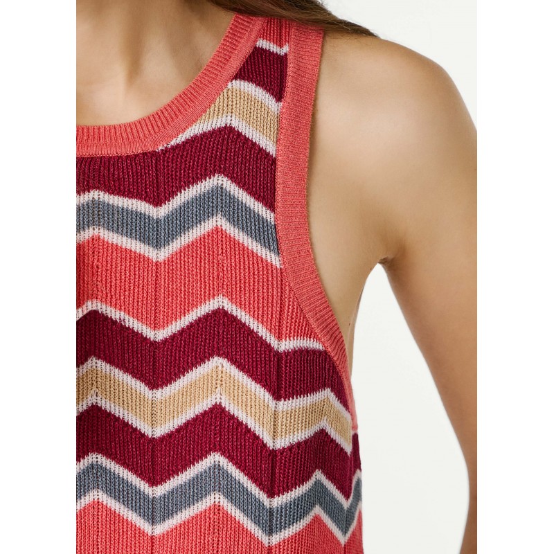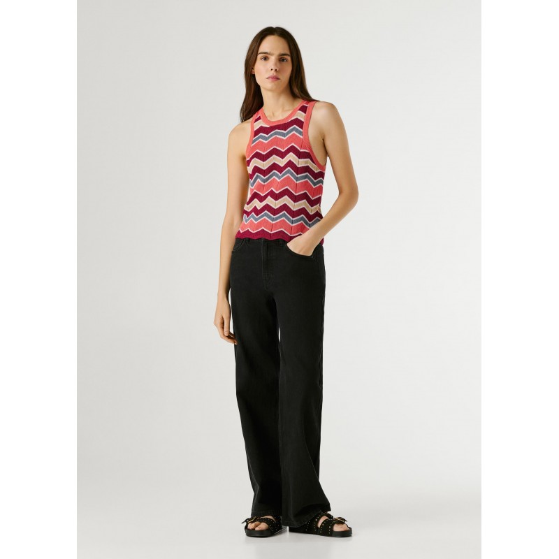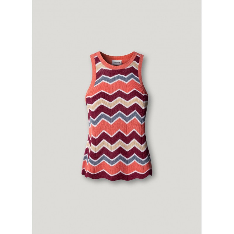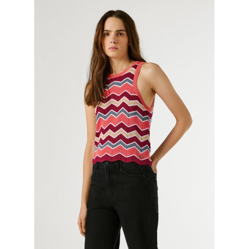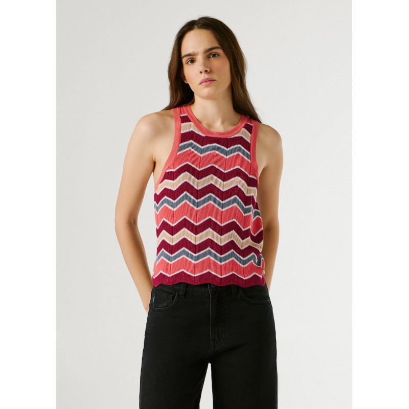 Top canalé para mujer de diseño de rayas en zigzag, cuello redondo con detalle de canalé y en sus mangas sisas.