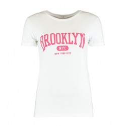 Camiseta mujer estampada de cuello redondo y manga corta.