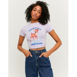 Camiseta mujer estampada de cuello redondo y manga corta.
