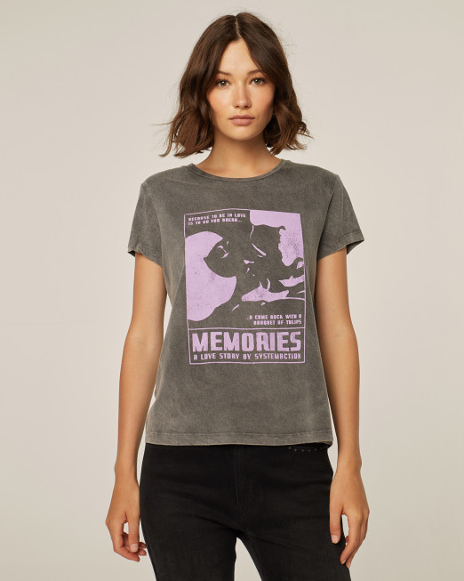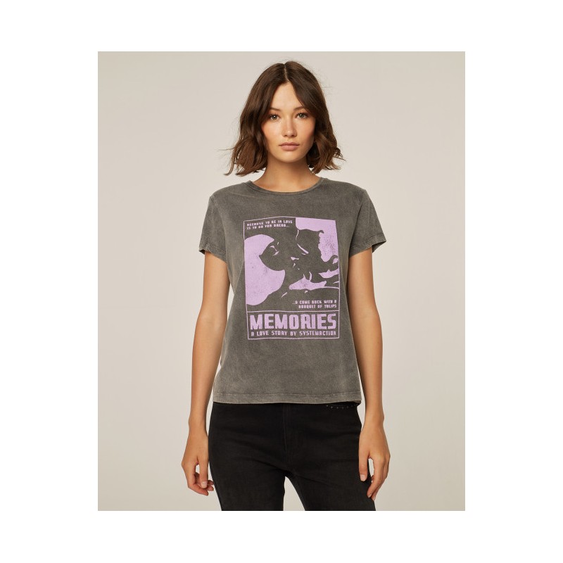 Camiseta mujer estampada de cuello redondo y manga corta.