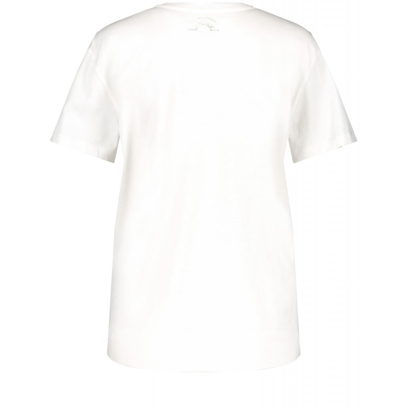 Camiseta manga corta y cuello redondo con ribete de canalé. Tiene aberturas laterales.