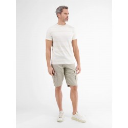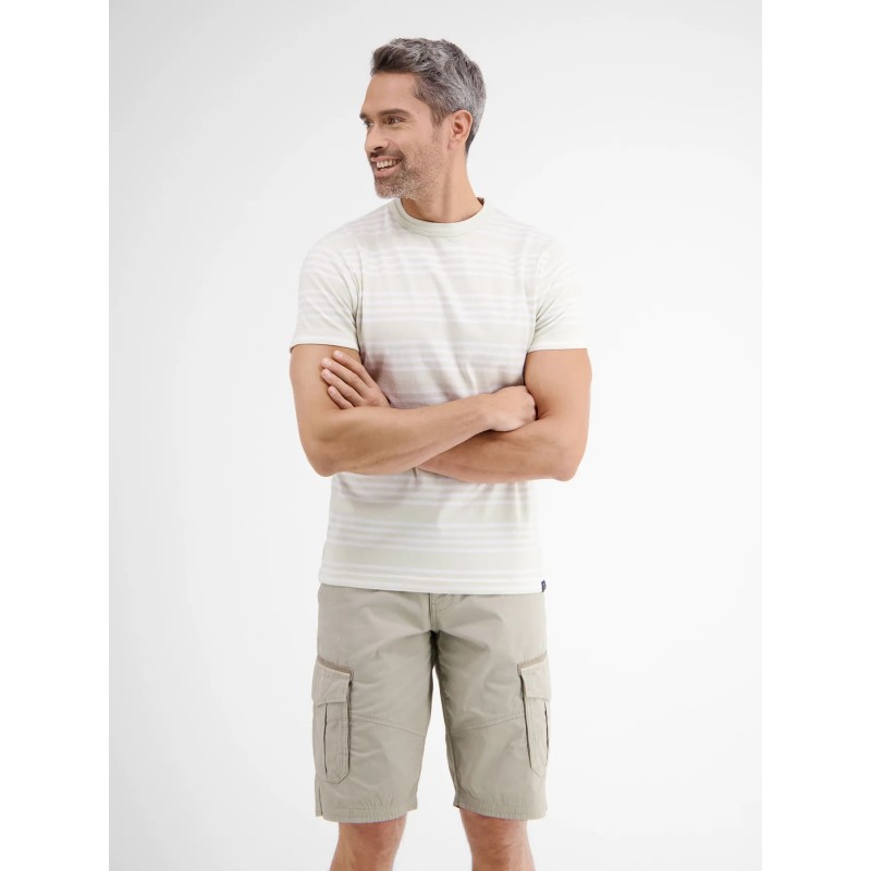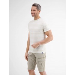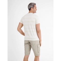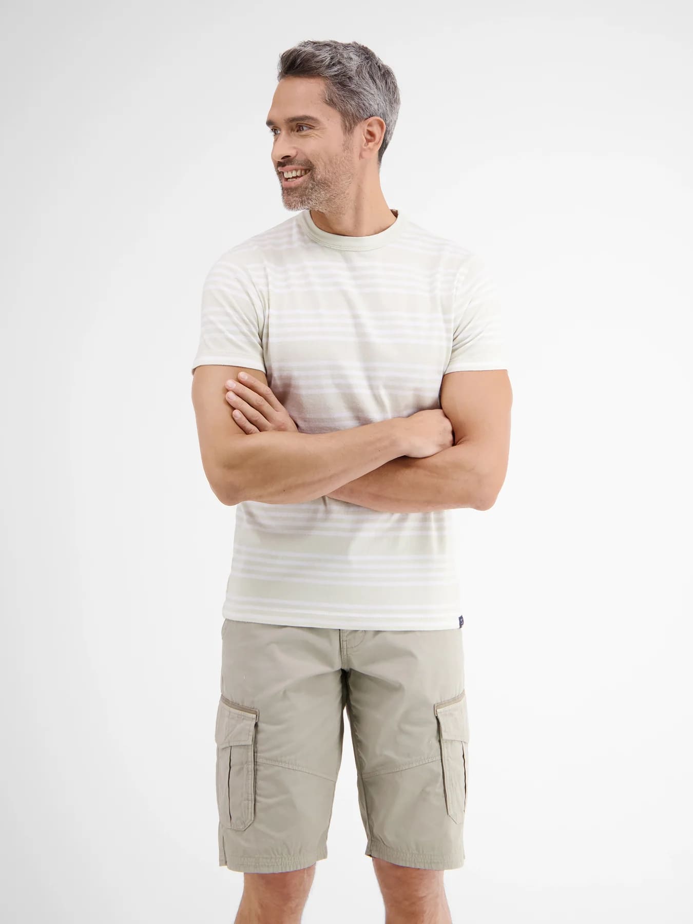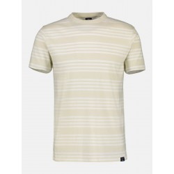 Camiseta estampado de rayas para hombre de cuello redondo acanalado y manga corta.
