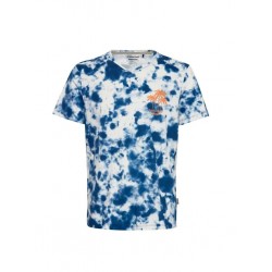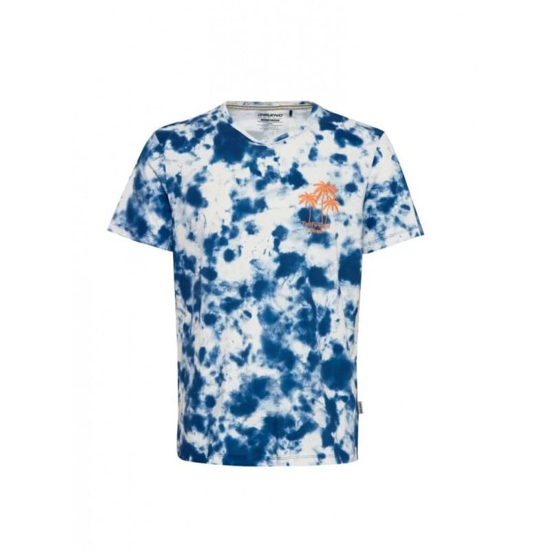Camiseta para hombre de estampado tie-dye, detalle a contraste de palmeras en el pecho, cuello redondo y manga corta.
