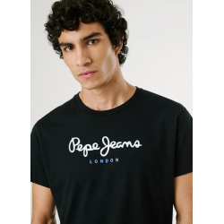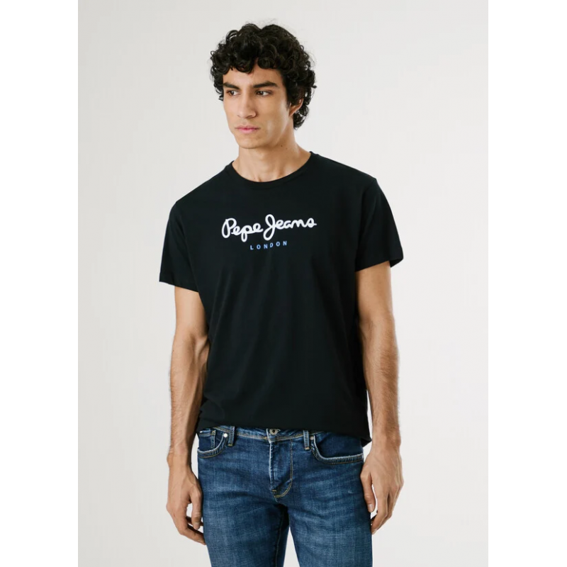 Camiseta fit regular para hombre. Manga corta. Cuello redondo con detalle canalé. Acabado doble pespunte en mangas y bajo. Logo PEPEJEANS estampado en el pecho.