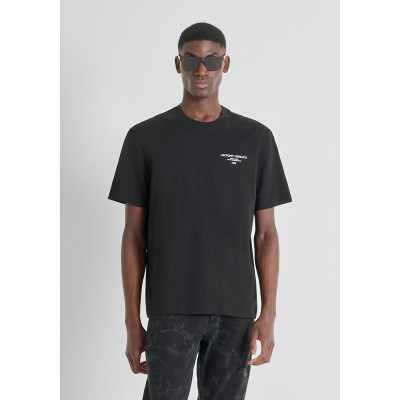 Camiseta de manga corta para hombre. Cuello redondo relaxed fit realizada en algodón suave. En el pecho destaca un pequeño logo en contraste, que se retoma en la espalda de la camiseta. Un estilo moderno, que revisita la clásica camiseta con logo haciéndola más fresca y street.