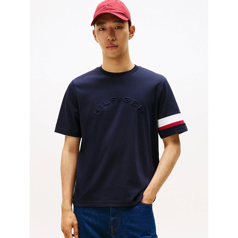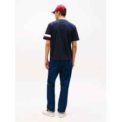 Camiseta de manga corta para hombre. Punto interlock.Diseño distintivo color block en la manga. Cuello redondo. Algodón elástico. Logo tonal de Tommy Hilfiger bordado en el pecho.