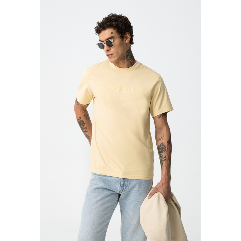 Camiseta bordada para hombre. De corte regular. Cuello redondo y mangas cortas.