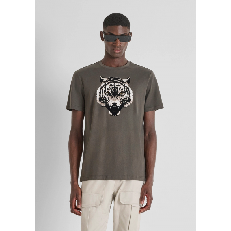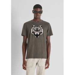 Camiseta de manga corta para hombre. Cuello redondo. Estampado frontal. Regular fit.