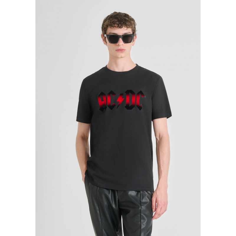 Camiseta de manga corta para hombre. Rinde homenaje a los dioses del «hard rock» con esta camiseta regular fit de cuello redondo dedicada a AC/DC, la histórica e inmortal banda que ha hecho vibrar a todas las generaciones. El estampado del logotipo de la banda se propone con un efecto flocado especial, de textura aterciopelada y tridimensional.