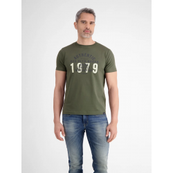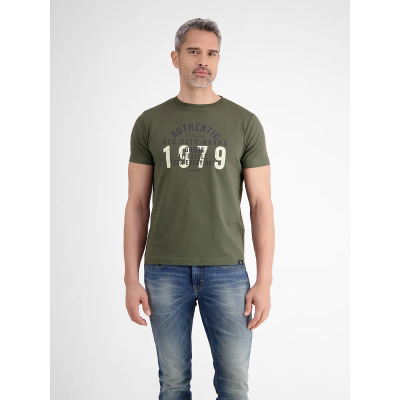 Camiseta de manga corta para hombre. Cuello redondo. Estampado frontal. Corte ajustado.