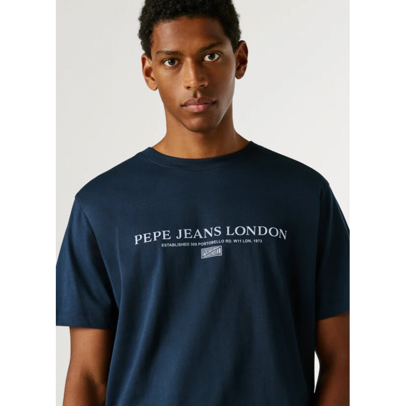 Camiseta de manga corta para hombre. Regular fit. Cuello redondo con detalle canalé. Logo PEPEJEANS estampado en el pecho.