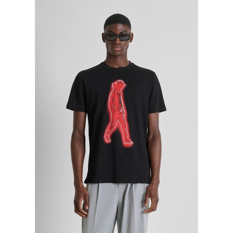 Camiseta regular fit para hombre de estampado en la parte frontal, cuello redondo y manga corta.