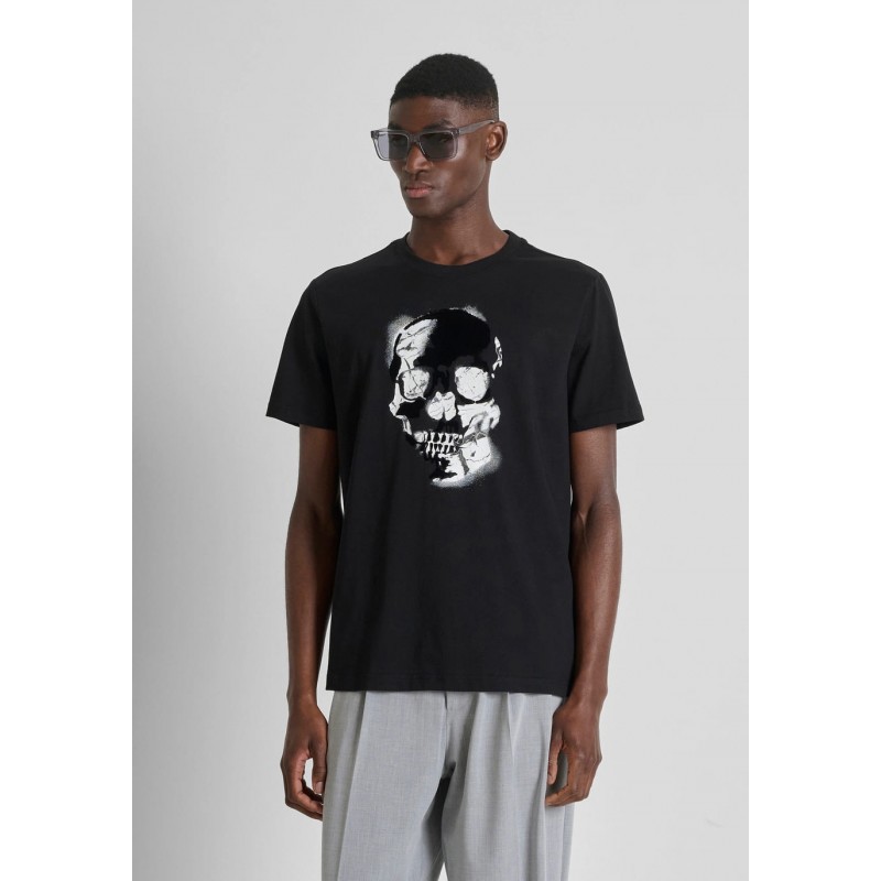 Camiseta para hombre de estampado de calavera en la parte frontal, cuello redondo y manga corta.