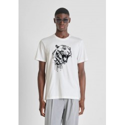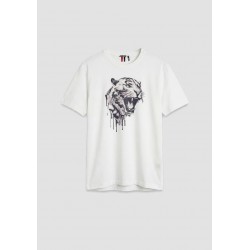 Camiseta regular fit de estampado de tigre en la parte frontal, cuello redondo y manga corta.